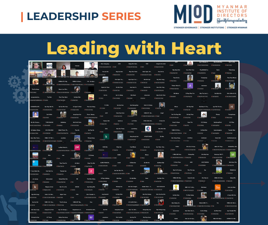 This website is owned and operated by the Myanmar Institute of Directors (hereinafter called “MIoD”). All documents and information on this website are protected by copyright. No material from this website shall be reproduced, republished, uploaded, posted, transmitted, mirrored, framed or otherwise distributed in any way without the prior written consent of MIoD. Graphics and images on this website, including the MIoD logo and related images, are protected by copyright and may not be reproduced or appropriated in any manner without the prior written consent of their respective copyright owners.