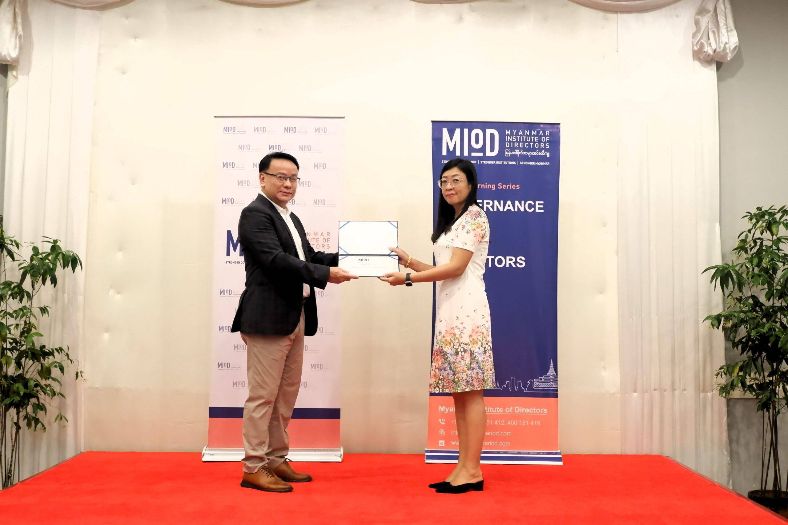This website is owned and operated by the Myanmar Institute of Directors (hereinafter called “MIoD”). All documents and information on this website are protected by copyright. No material from this website shall be reproduced, republished, uploaded, posted, transmitted, mirrored, framed or otherwise distributed in any way without the prior written consent of MIoD. Graphics and images on this website, including the MIoD logo and related images, are protected by copyright and may not be reproduced or appropriated in any manner without the prior written consent of their respective copyright owners.